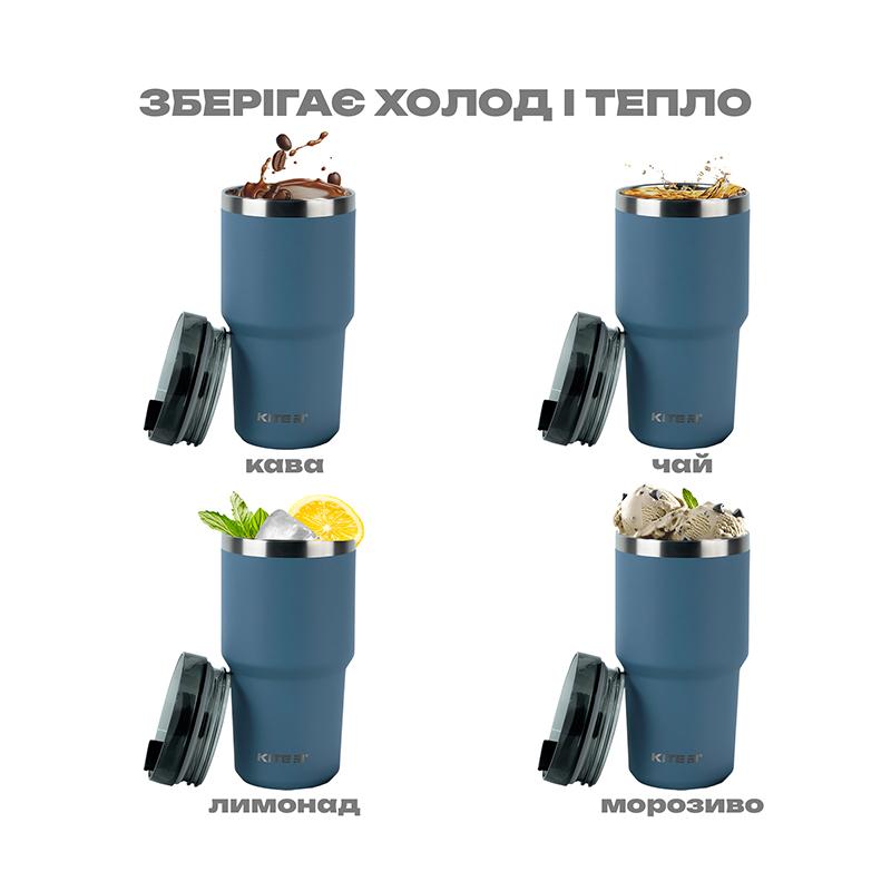 Термокружка Kite K24-1206-3, сіра – незамінна в дорозі, на прогулянках і пікніках. Вона чудово утримує тепло або холод, зберігаючи температуру напоїв до 4-х годин. Ви зможете довго ласувати гарячим ароматним чаєм або ідеально крижаним лимонадом.
