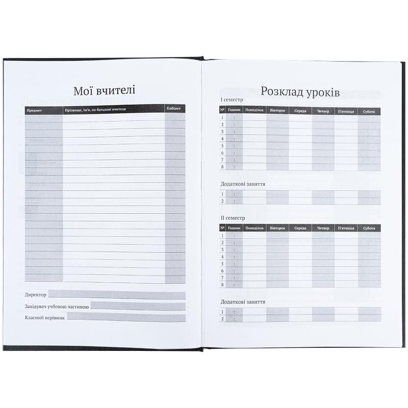 Щоденник розрахований на 46 тижнів. Також містить корисну інформацію: Державну символіку та Гімн, поле для списку вчителів та сторінку для підсумкових балів.