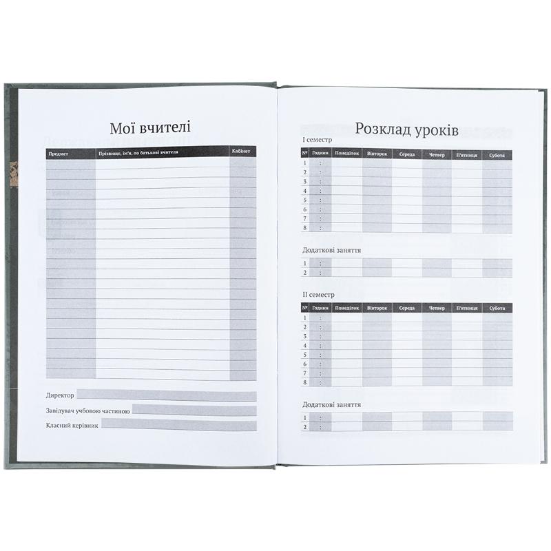 Щоденник розрахований на 46 тижнів. Також містить корисну інформацію: Державну символіку та Гімн, поле для списку вчителів та сторінку для підсумкових балів.