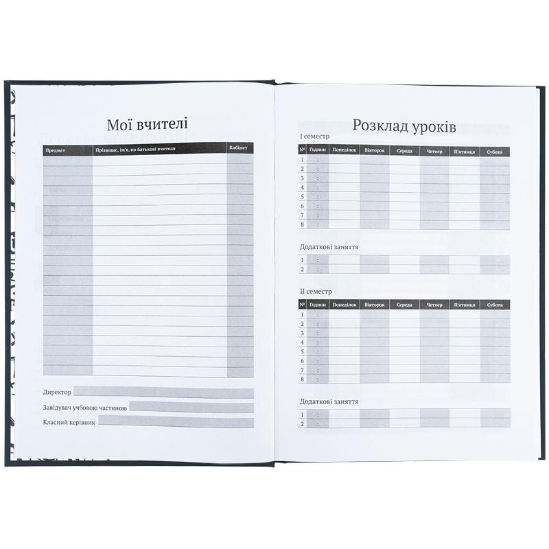 Щоденник розрахований на 46 тижнів. Також містить корисну інформацію: Державну символіку та Гімн, поле для списку вчителів та сторінку для підсумкових балів.