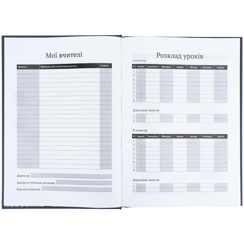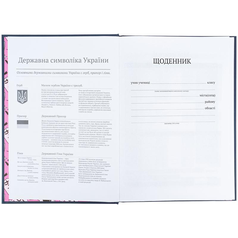 Щоденник розрахований на 46 тижнів. Також містить корисну інформацію: Державну символіку та Гімн, поле для списку вчителів та сторінку для підсумкових балів.