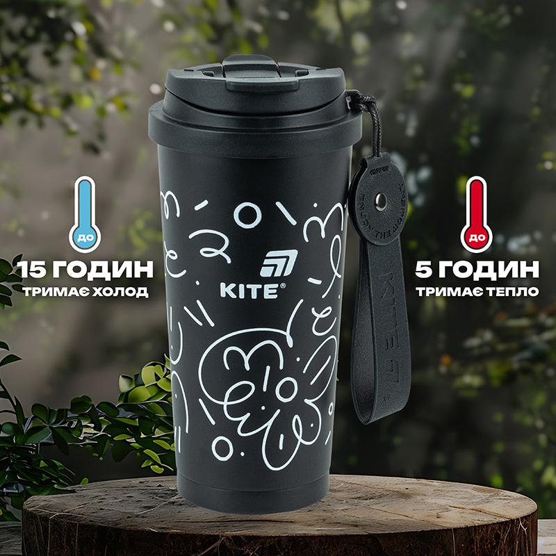 Термокружка надійно утримує температуру до 5 годин — гарячий напій залишається гарячим, холодний — приємно прохолодним. Ідеальний вибір для чаю, кави, лимонаду, компоту або будь-якого іншого напою, який хочеться мати під рукою.
