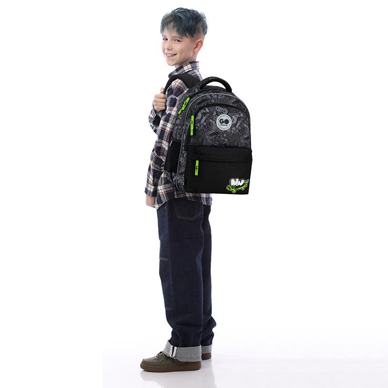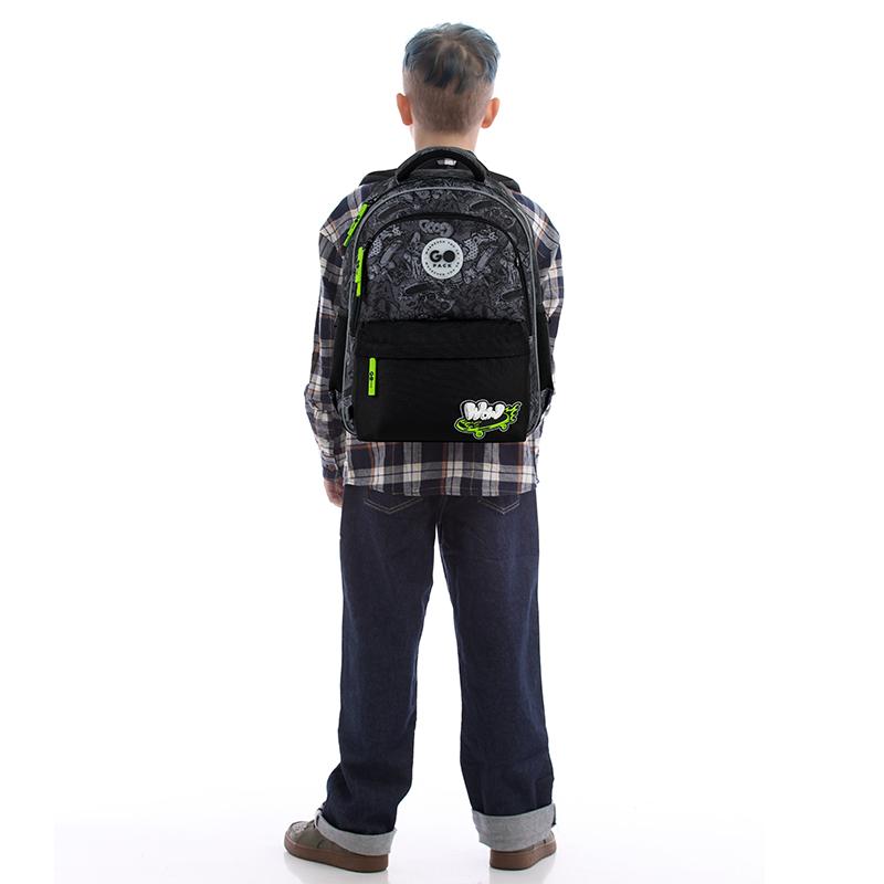 Рюкзак GoPack Education GO26-182M-7. Ортопедична спинка Ergo Kids, 2 відділення, 1 передня та 2 бічні кишені, внутрішні роздільники, органайзер, надійні блискавки, нагрудний ремінь, м'яка ущільнена ручка, ущільнене дно, світловідбивні елементи