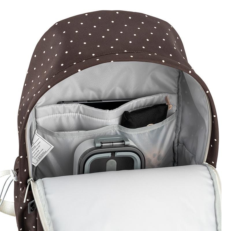 Рюкзак зручний для щоденного носіння. Має комфортну конструкцію та дозволяє зберігати улюблені речі в ідеальному порядку. Всередині — простір для мрій, ґаджетів, важливих дрібниць і навіть несподіваних покупок.