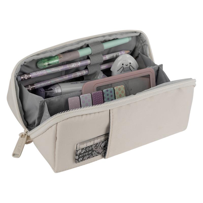 Пенал Kite K25-2702-1 – зручне і стильне рішення для підлітків та молоді. Завдяки просторому відділенню на блискавці, він зберігає всі необхідні речі в порядку, а дві зовнішні кишені дають можливість організувати канцелярські дрібнички. Внутрішня кишеня-роздільник дозволяє зручно організувати вміст, що не витрачати час на пошуки та не відволікатися на уроках.