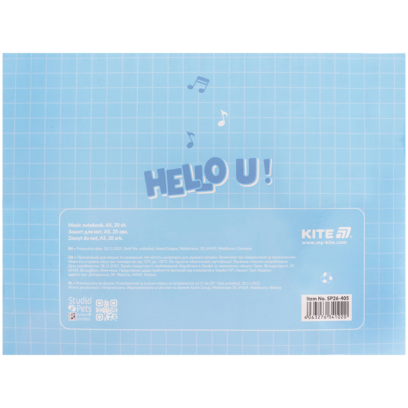 Зошит для нот Kite SP26-405 стане чудовим помічником на уроках музики. Найголовніший маст-хев для вивчення нотної грамоти та запису партитур.