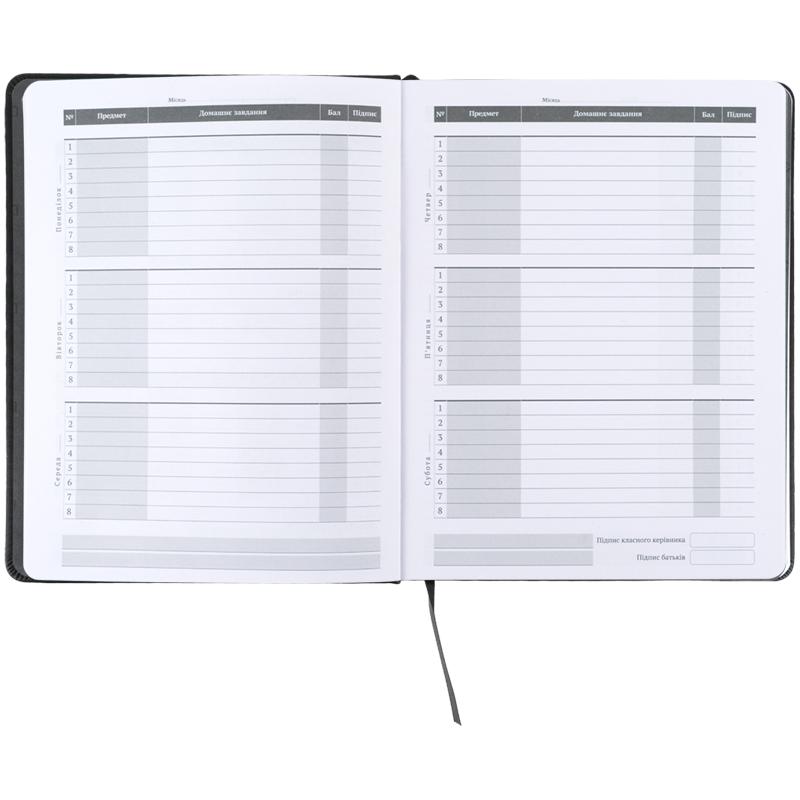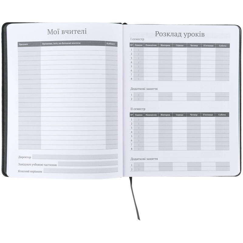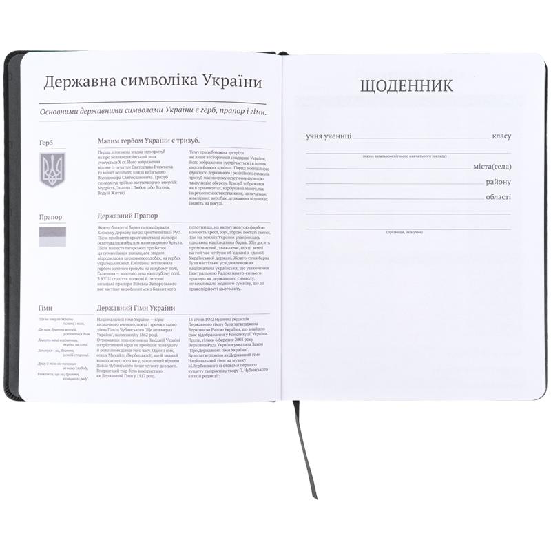 Щоденник розрахований на 46 тижнів. Також містить важливу інформацію: Державну символіку та гімн, поле для списку вчителів та сторінку для підсумкових балів.