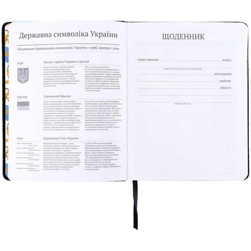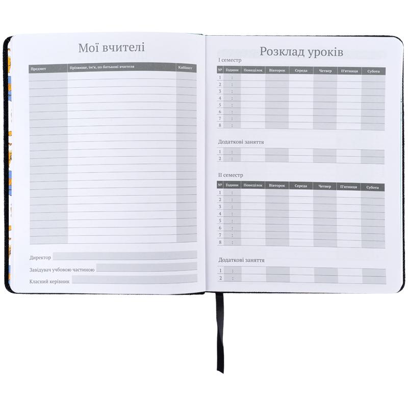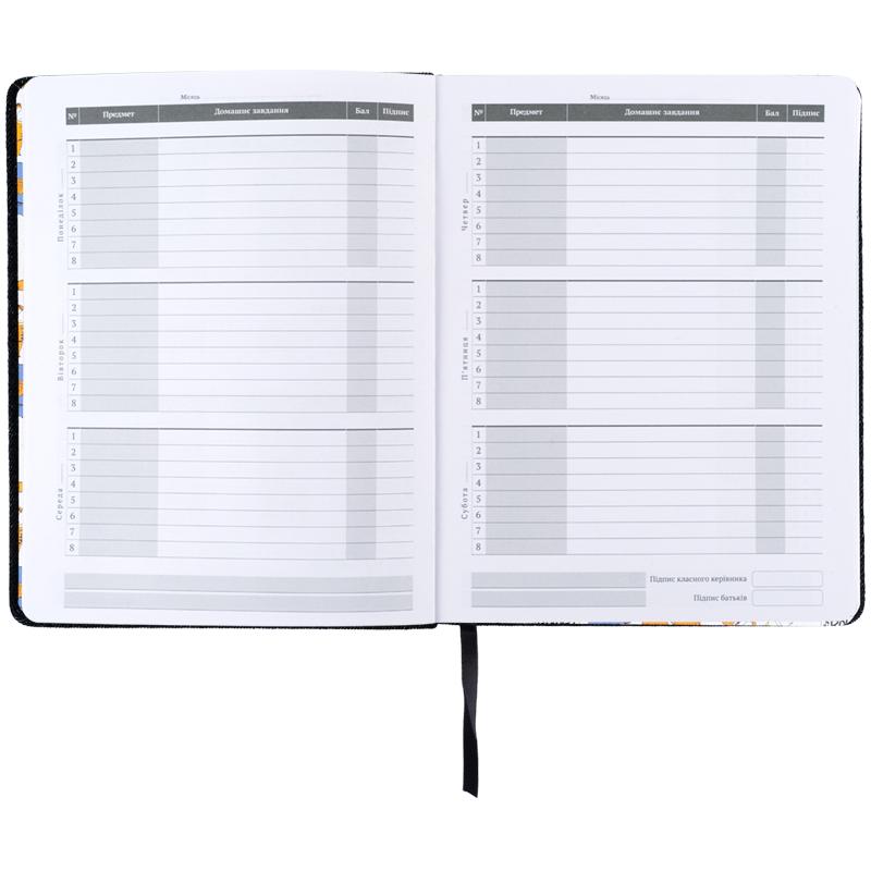 Щоденник розрахований на 46 тижнів. Також містить важливу інформацію: Державну символіку та гімн, поле для списку вчителів та сторінку для підсумкових балів.