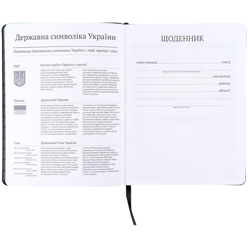 Щоденник розрахований на 46 тижнів. Також містить важливу інформацію: Державну символіку та гімн України, поле для списку вчителів та сторінку для підсумкових балів.