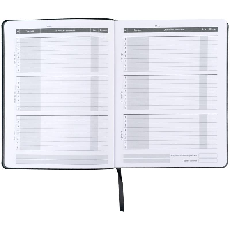 Щоденник розрахований на 46 тижнів. Також містить важливу інформацію: Державну символіку та гімн України, поле для списку вчителів та сторінку для підсумкових балів.