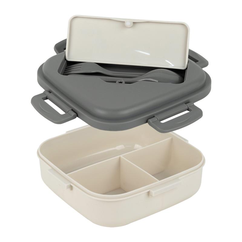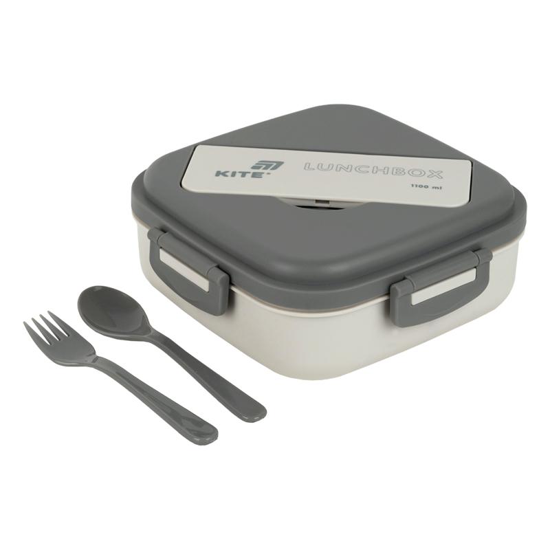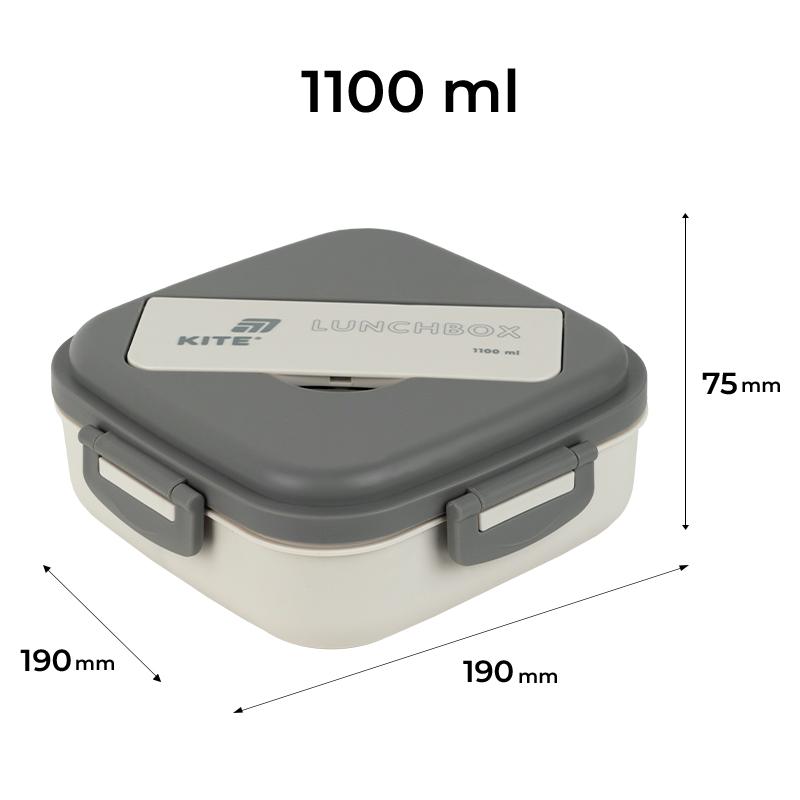 Ланчбокс Kite зроблений з харчового пластику. Бокс призначений для зберігання ланчу. Основа розділена на 3 відділення, доповнений столовим приладдям. Він щільно закривається. Ланчбокс також можна використовувати як лоток для зберігання їжі в холодильнику. Об'єм 1100 мл.