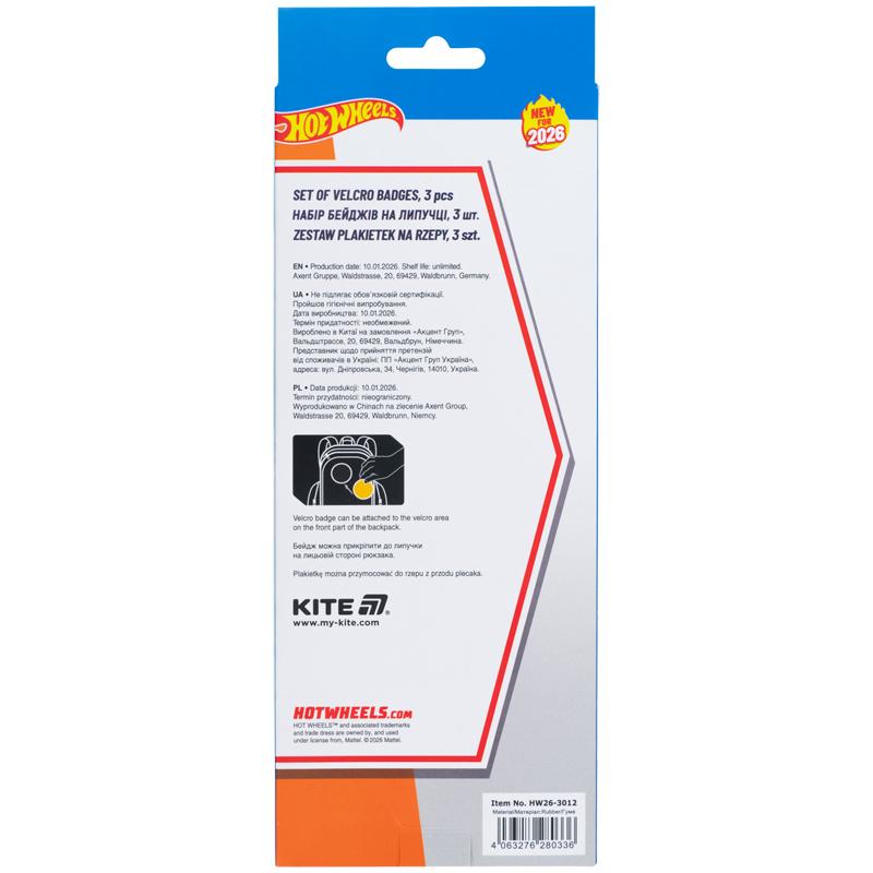 Стильний набір бейджів у популярній ліцензії Hot Wheels стане виразним акцентом образу. Їх можна носити по черзі, або всі одразу. А також – комбінувати з іншими бейджами та аксесуарами Kite.