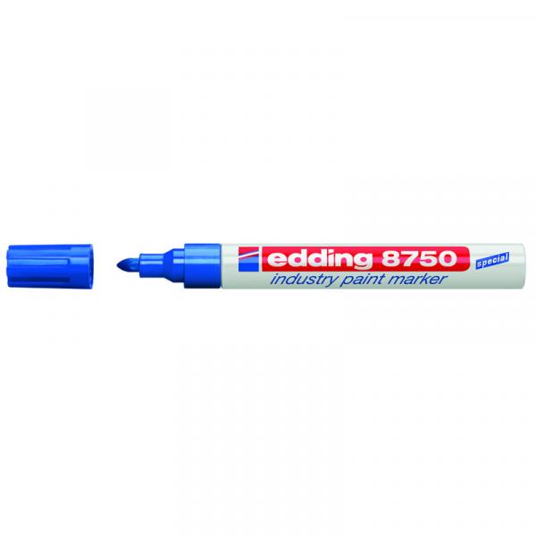Маркер лаковий Industry Paint e-8750, для нанесення перманентних написів в агресивних промислових умовах, слід (2-4 мм) стійкий до кислот, розчинників, механічного стирання, напис витримує від -30 °С до +30 °С, синього кольору, круглий пишучий вузол.