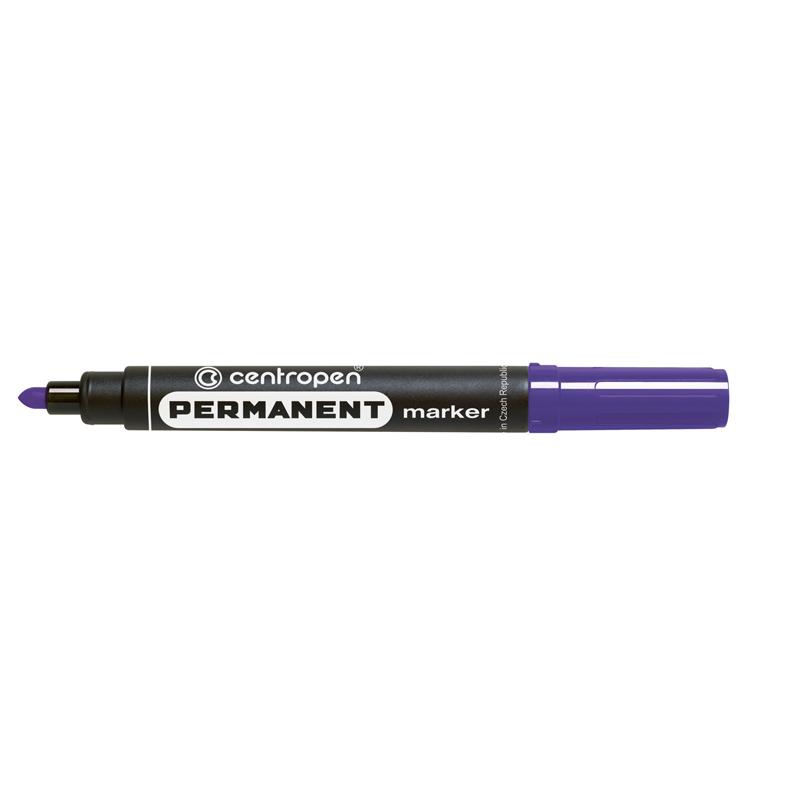 Маркер Permanent 8566 для нанесення стійких написів практично на будь-яку поверхню, фіолетового кольору, круглий пишучий вузол, ширина лінії 2,5 мм. Вироблено в Чехії.