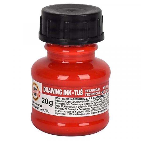 Туш для креслення KOH-I-NOOR, на водній основі, пластиковий флакон 20г,червона