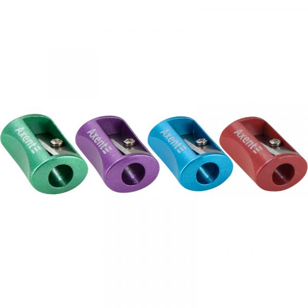 Металева точилка Axent Steel легко і акуратно заточує олівці завдяки гострому міцному лезу, яке міцно кріпиться шурупом до корпусу. Має ергономічну форму, сучасний дизайн. Виготовлена з алюмінію. Яскраві кольори.