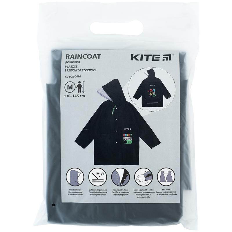 Плащ-дощовик дитячий Kite K24-2600M захистить від дощу дитину разом з її рюкзаком. Стильний та практичний аксесуар збереже одяг сухим та подарує відчуття комфорту. Він не сковує рухи та дарує свободу пересування. У дощовику можна ходити в дитячий садочок чи прогулюватися під дощиком та не боятися намокнути.
