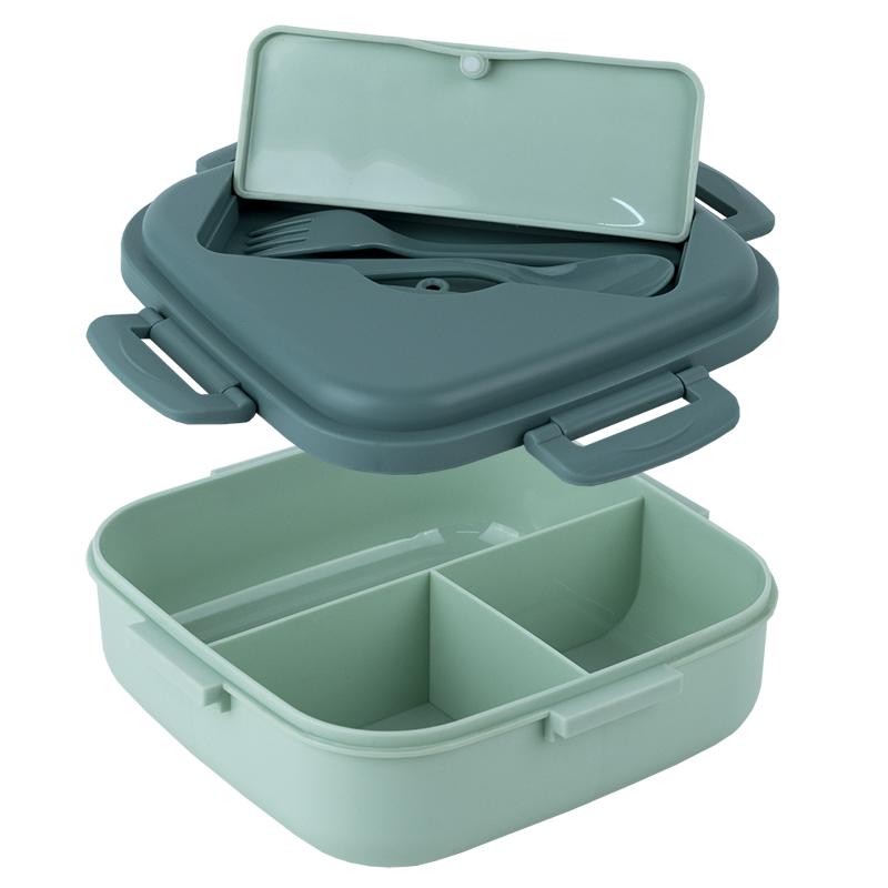 Основа розділена на три відділення. В комплекті є столове приладдя, завдяки якому можна зручно та культурно пообідати у будь-якому місці.