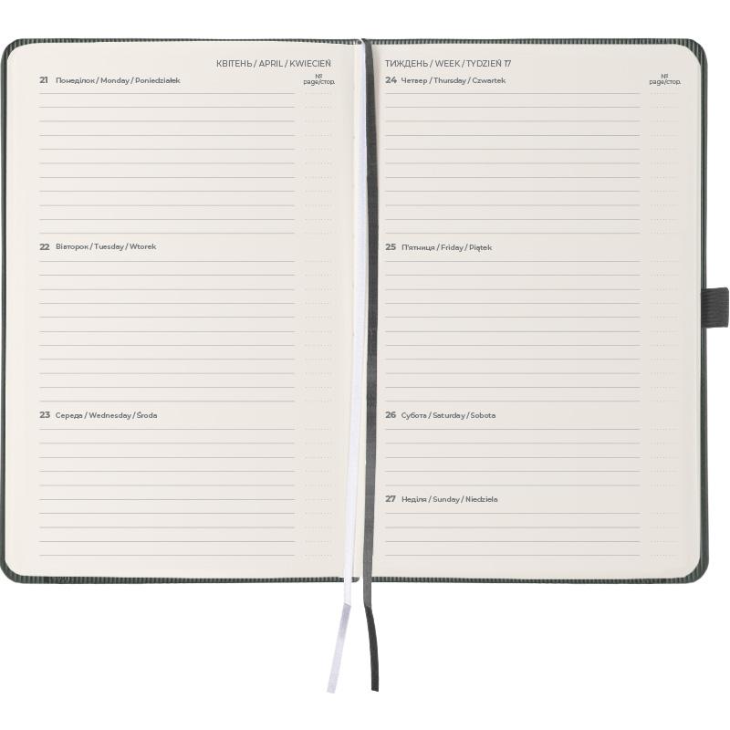 Щотижневик Axent 8515-25-03-A формату А5- із серії Lines з твердою обкладинкою. Використовується для щоденних записів, а також ділових та творчих задач.