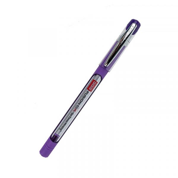 Ручка кулькова з непрозорим прогумованим корпусом з прозорими пластиковими вставками і металічним кліпом.Чорнило екстра в'язкості забезпечує суперм'яке письмо. Колір корпусу відповідає кольору чорнила. Пишучий вузол 0,7 мм. Колір чорнила: фіолетов.