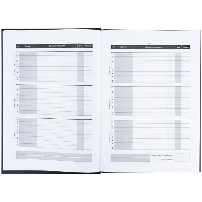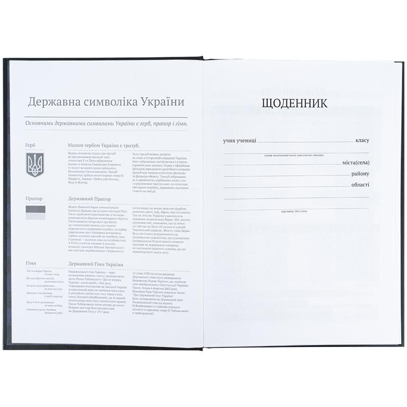 Щоденник розрахований на 46 тижнів. Також містить корисну інформацію: Державну символіку та Гімн, поле для списку вчителів та сторінку для підсумкових балів.