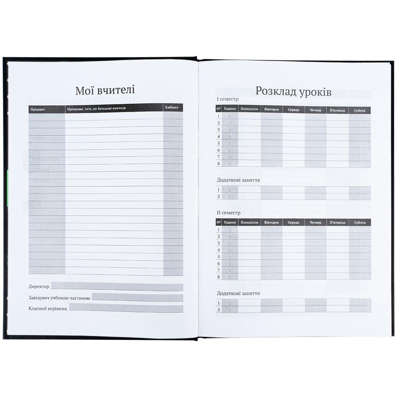 Щоденник розрахований на 46 тижнів. Також містить корисну інформацію: Державну символіку та Гімн, поле для списку вчителів та сторінку для підсумкових балів.