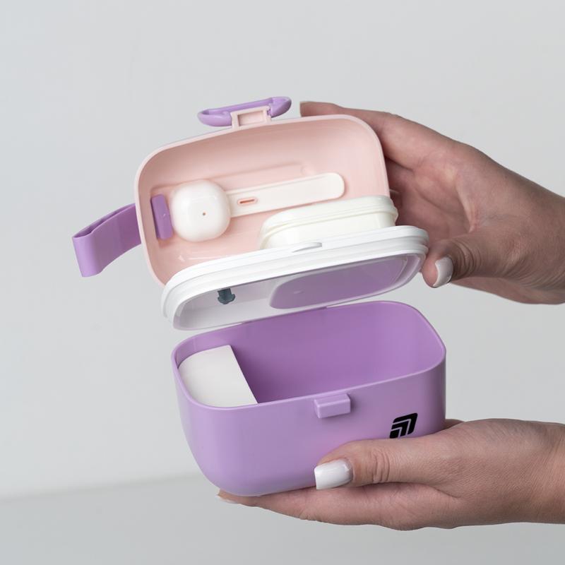 Ланчбокс виготовлений із безпечного харчового пластику, не містить BPA, має приємну на дотик матову поверхню та силіконову ручку-петлю — зручно носити в руці. Незамінний для тих, хто любить корисні перекуси та комфорт у деталях.