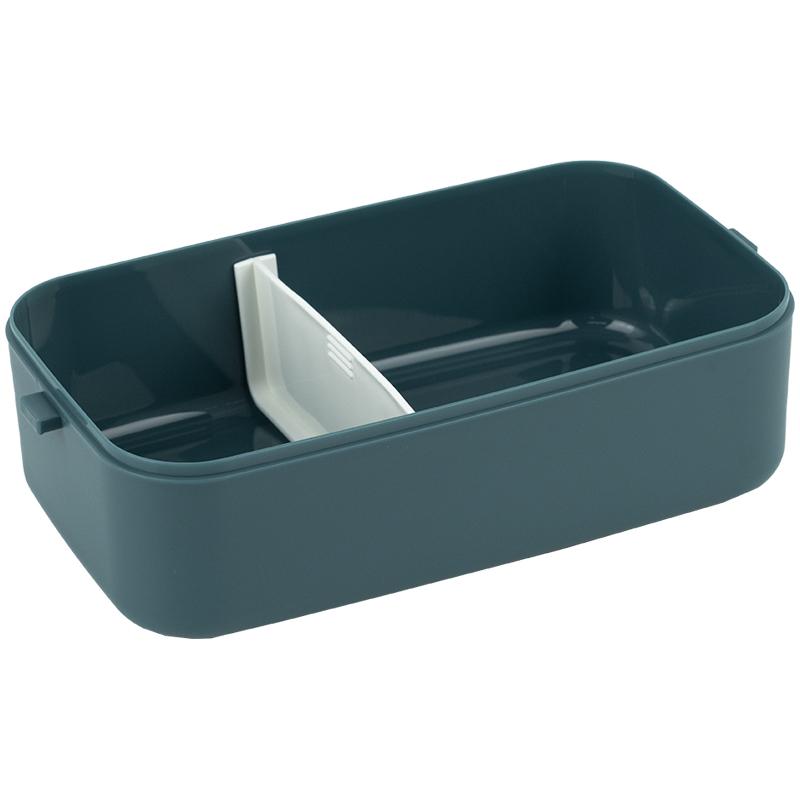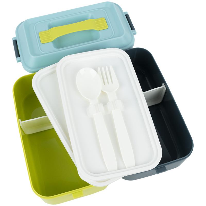 У комплекті — пластикова ложка та виделка, зручно зафіксовані всередині.