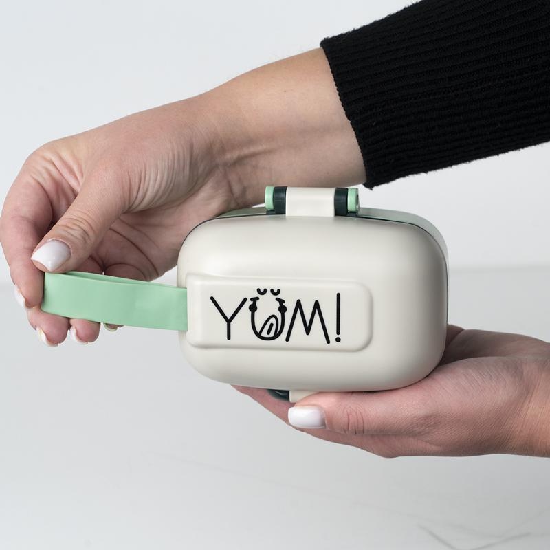 Ланчбокс виготовлений із безпечного харчового пластику, не містить BPA, має приємну на дотик матову поверхню та силіконову ручку-петлю — зручно носити в руці. Незамінний для тих, хто любить корисні перекуси та комфорт у деталях.