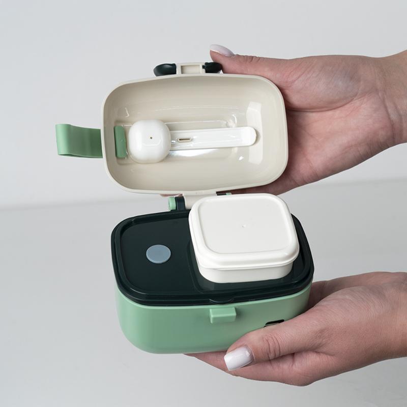 Це чудовий варіант для салатів, снеків, горішків, сухофруктів або фруктових міксів. А знімна міні-ємність із кришечкою дозволяє зручно брати із собою соуси, насіння, приправи чи корисні добавки — усе залишається свіжим і на своєму місці.