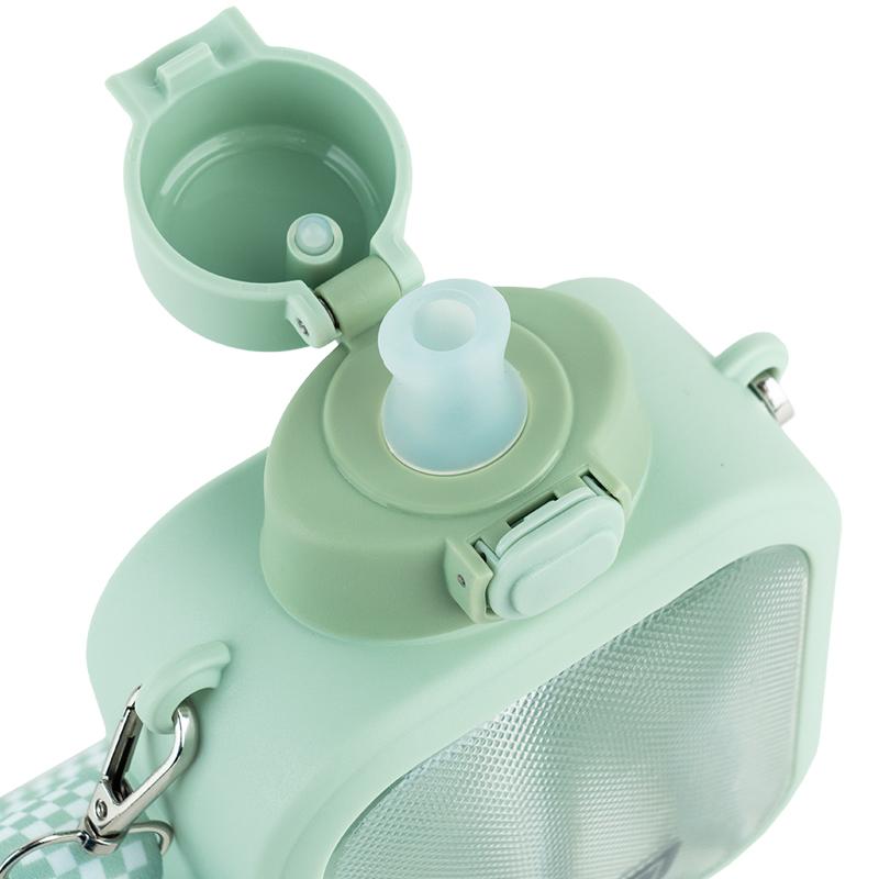 Пляшечка виготовлена з високоякісного тритану – безпечного та міцного матеріалу, що не містить бісфенолу-А, не вбирає запахи та не змінює смак напою. Зручна кришка відкривається легким натисканням кнопки. Усередині – силіконова трубочка, яка дозволяє пити воду, не нахиляючи пляшку. А знімна стрічка для перенесення додає зручності: носіть пляшечку з собою на прогулянки, до школи чи до тренажерної зали!
