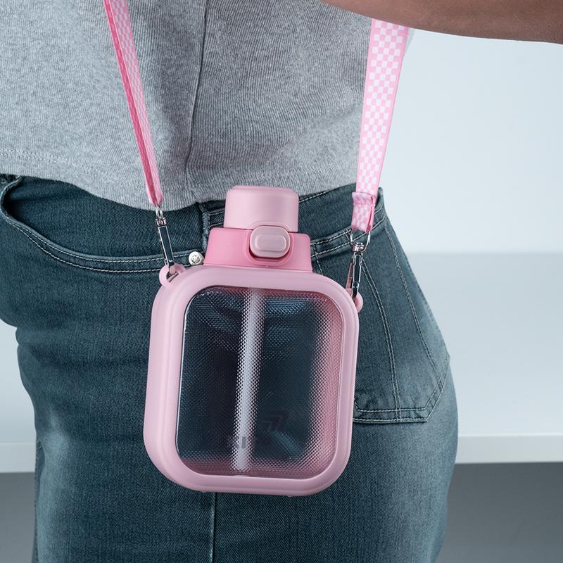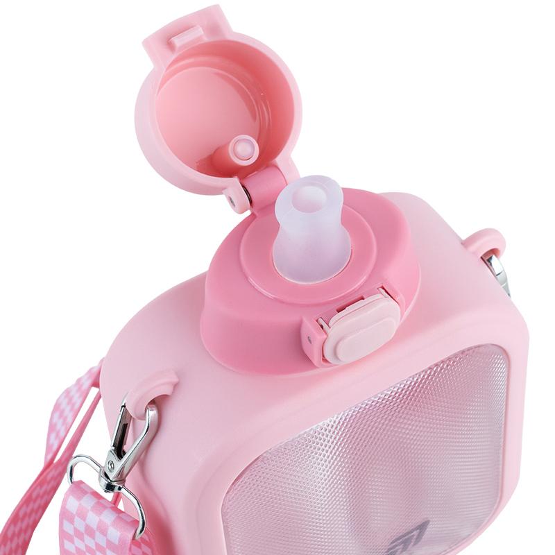 Пляшечка виготовлена з високоякісного тритану – безпечного та міцного матеріалу, що не містить бісфенолу-А, не вбирає запахи та не змінює смак напою. Зручна кришка відкривається легким натисканням кнопки. Усередині – силіконова трубочка, яка дозволяє пити воду, не нахиляючи пляшку. А знімна стрічка для перенесення додає зручності: носіть пляшечку з собою на прогулянки, до школи чи до тренажерної зали!
