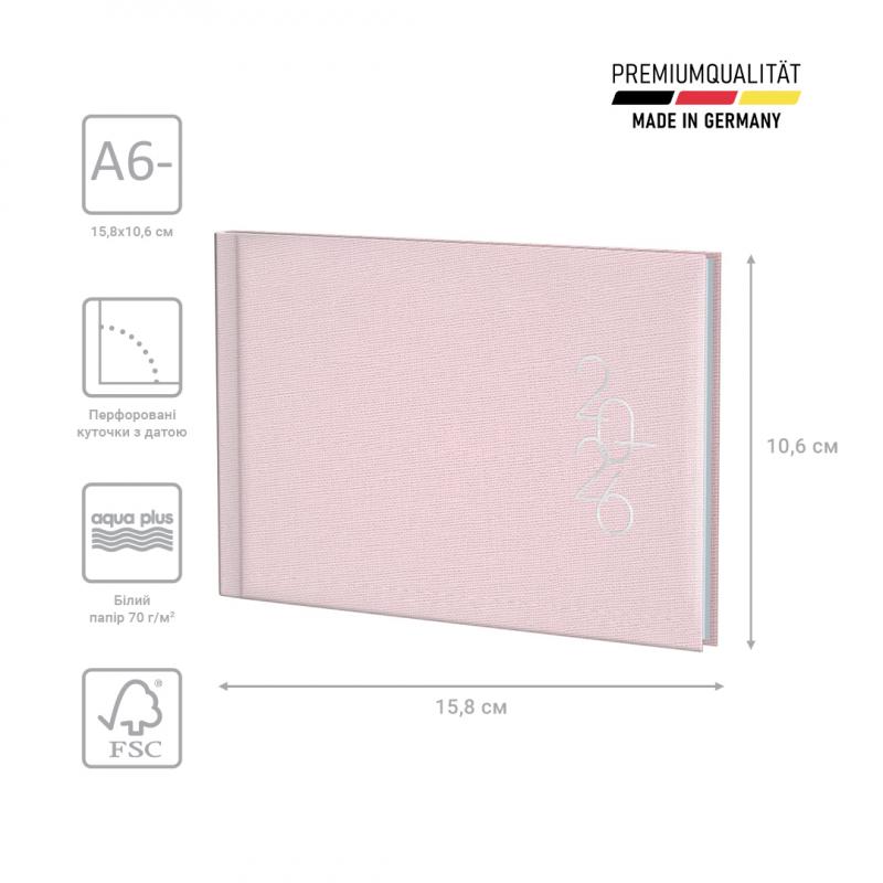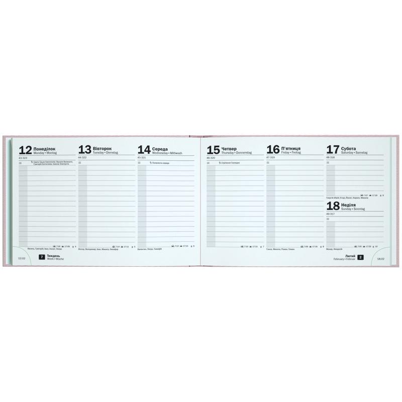 Кишеньковий формат А6-. Дві сторінки – один тиждень. Інформаційний блок. Перфоровані датовані куточки.