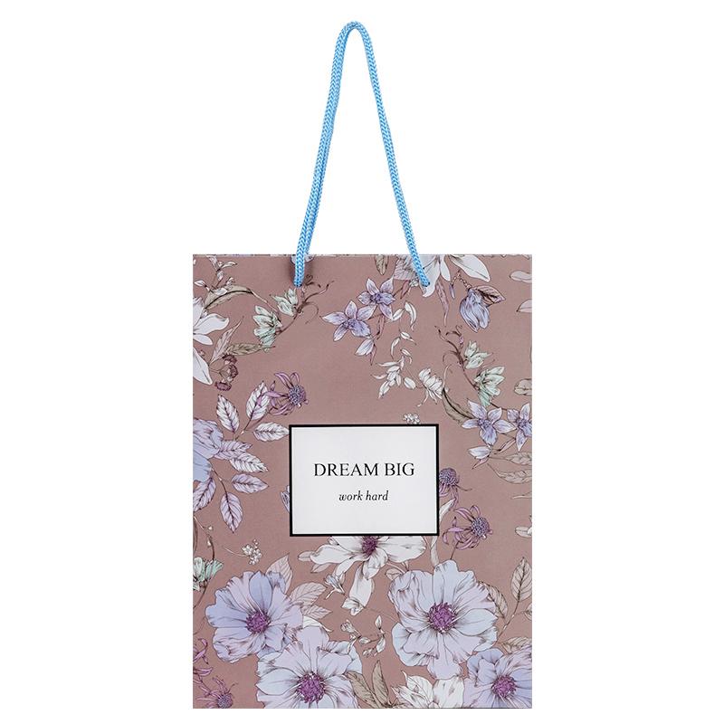 Ефектний дизайн підніме настрій та подарує море позитивних емоцій. Ручки з ніжної тасьми, які гармонійно поєднуються з кольоровою гамою дизайну, стильно доповнюють декор та зручні для перенесення. Трендова матова поверхня, повнокольоровий друк, фольга надають виробу особливого шарму.