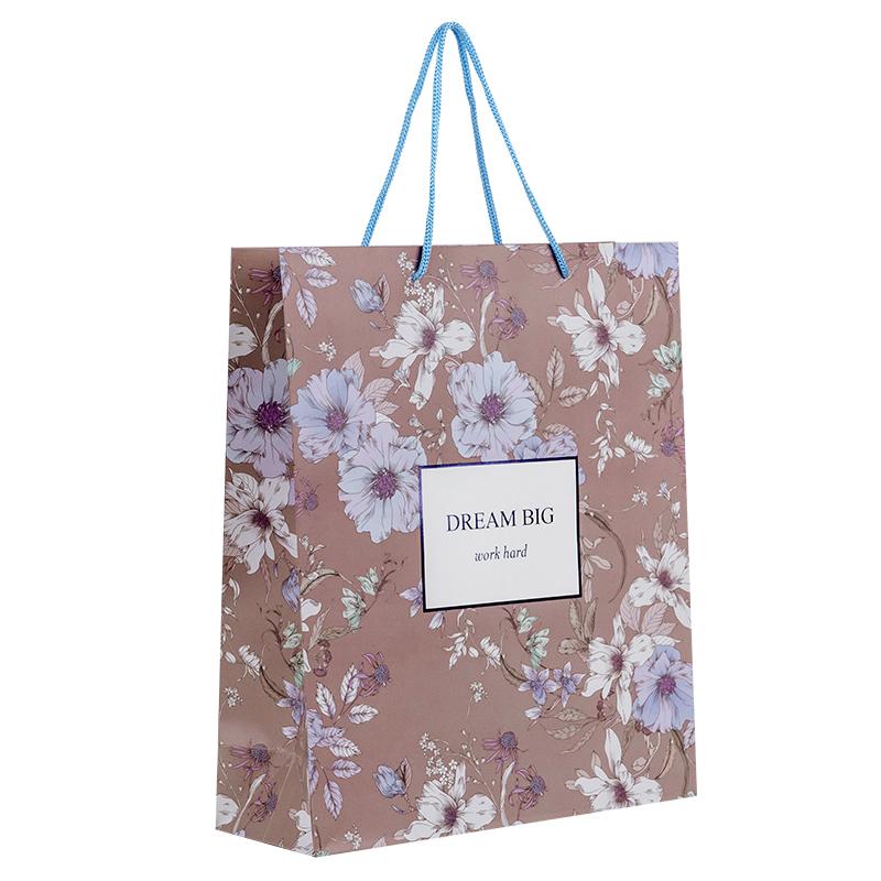 Ефектний дизайн підніме настрій та подарує море позитивних емоцій. Ручки з ніжної тасьми, які гармонійно поєднуються з кольоровою гамою дизайну, стильно доповнюють декор та зручні для перенесення. Трендова матова поверхня, повнокольоровий друк, фольга надають виробу особливого шарму.