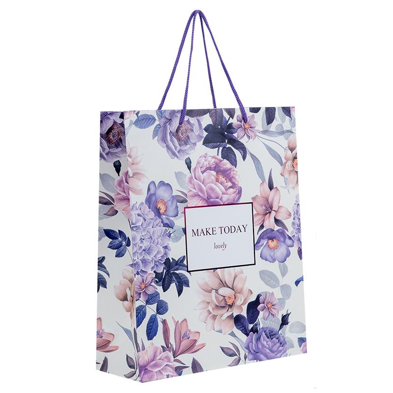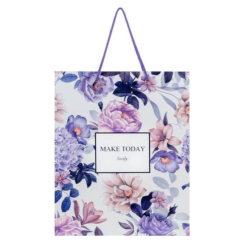 Ефектний дизайн підніме настрій та подарує море позитивних емоцій. Ручки з ніжної тасьми, які гармонійно поєднуються з кольоровою гамою дизайну, стильно доповнюють декор та зручні для перенесення. Трендова матова поверхня, повнокольоровий друк, фольга надають виробу особливого шарму.