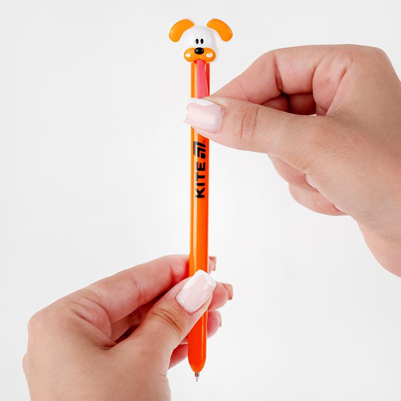 Щоб ручка почала писати, достатньо потягнути песика за язичок — і пишучий вузол «вискочить» назустріч новим ідеям. Такий формат точно підкорить серце дитини й зробить навіть звичайне письмо трішечки веселішим.