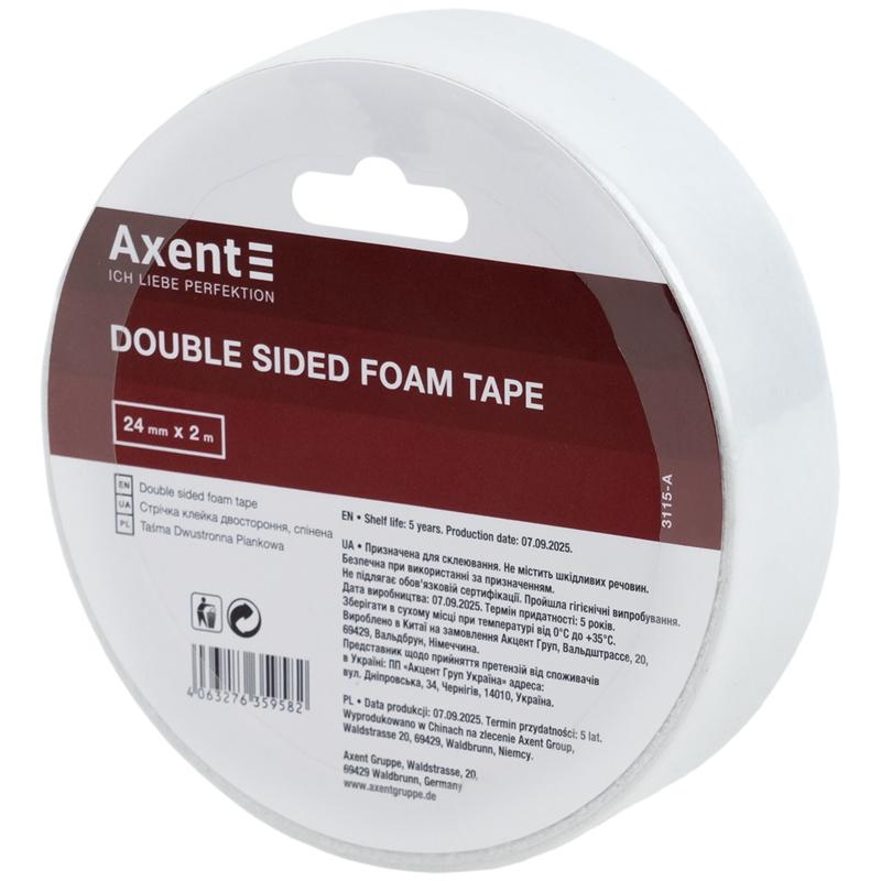 Двостороння клейка стрічка Axent 3115-A виконана на білій спіненій підкладці. Двостороння. В індивідуальному пакуванні.