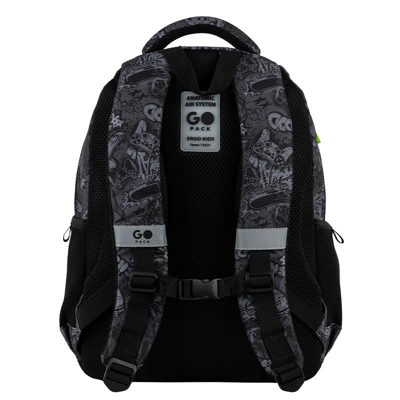 Рюкзак GoPack Education GO26-182M-7. Ортопедична спинка Ergo Kids, 2 відділення, 1 передня та 2 бічні кишені, внутрішні роздільники, органайзер, надійні блискавки, нагрудний ремінь, м'яка ущільнена ручка, ущільнене дно, світловідбивні елементи