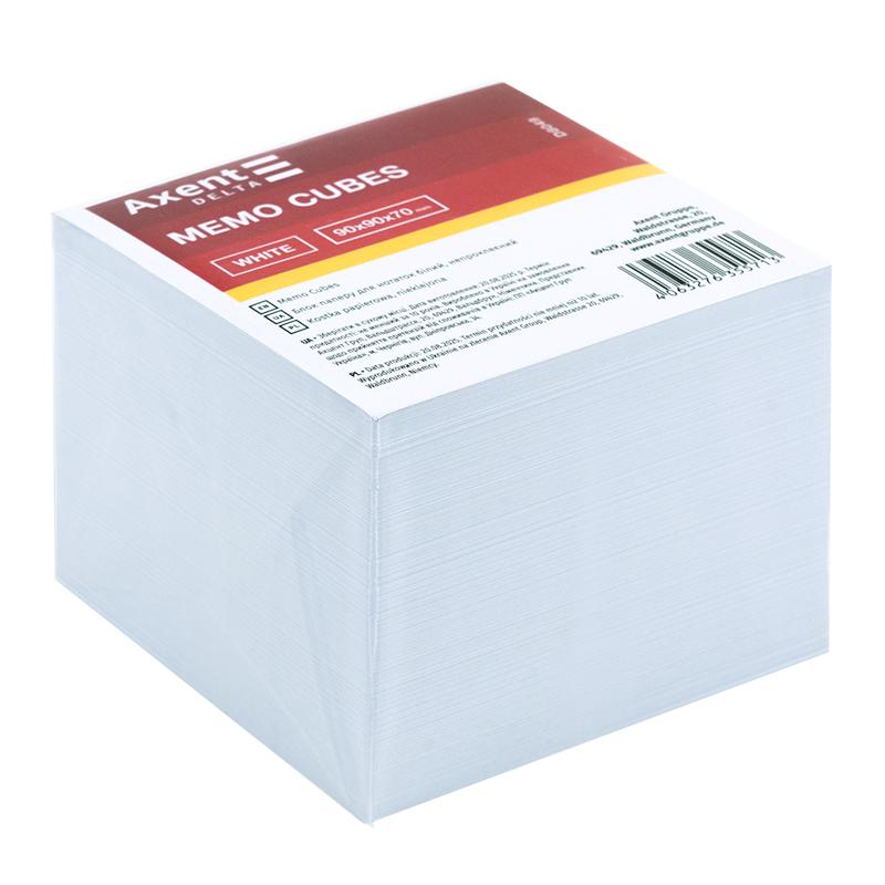 Папір для нотаток Axent Delta D8049 запакований в блок розміром 90х90х70 мм. Папір білий непроклеєний.