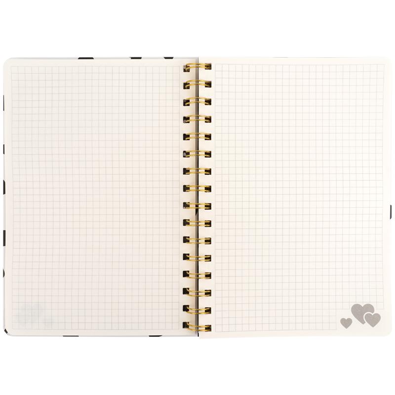 Універсальний внутрішній блок в клітинку підходить для будь-яких записів, малювання схем, графіків, створення списків справ або ведення обліку. Тверда обкладинка відмінно тримає форму та забезпечує охайне зберігання сторінок. Це ідеальний аксесуар для творчих особистостей та тих, хто цінує якість та естетику. Не втрачайте свої ідеї – занотуйте їх у цьому чудовому блокноті!