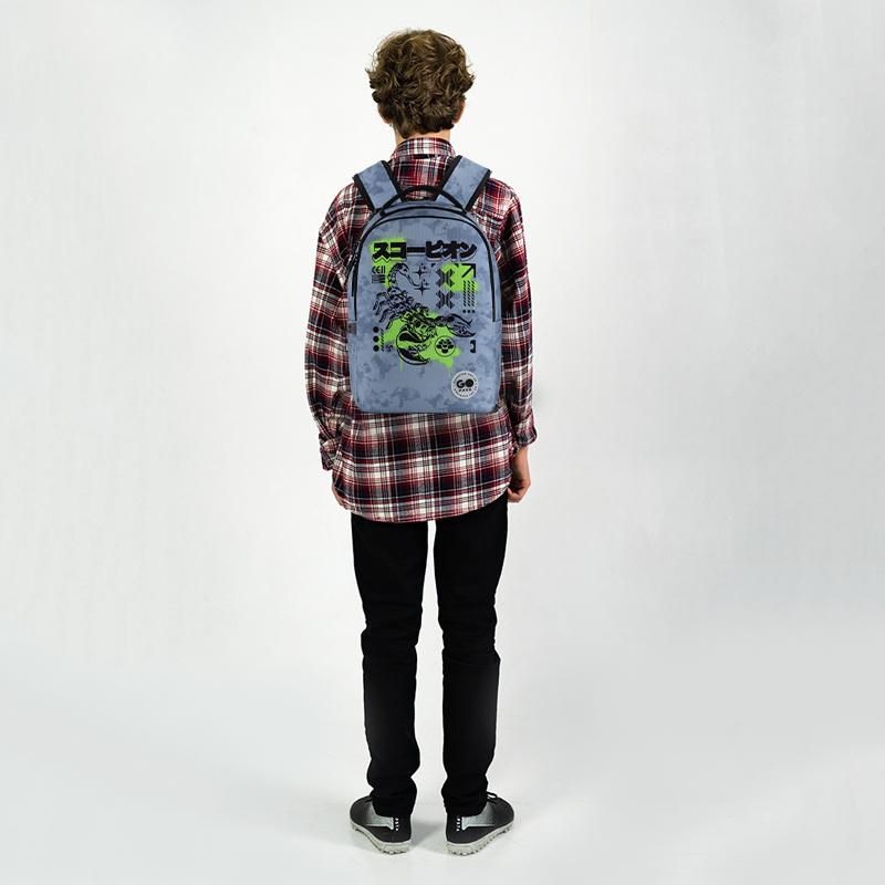 Рюкзак GoPack GO26-135M-5 – стильна модель для сміливих і творчих. Яскравий дизайн та зухвалий принт перетворюють цей наплічник на справжню зірку шкільних коридорів. Рюкзак дуже місткий, має продумані кишені, сучасний дизайн і чудову якість. Модель рекомендована для дорослих та школярів зростом від 130 см. Чудово підходить як для навчання, так і для поїздок, прогулянок чи подорожей.