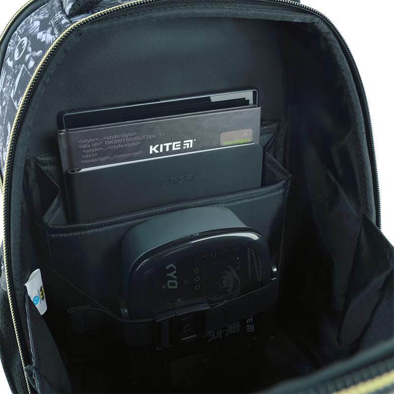 Каркасні моделі допомагають непосидам підтримувати канцелярію в акуратному вигляді: жорсткі панелі захищають книги і зошити від пошкоджень. Передня ущільнена панель розстібається донизу, щоб дитині було зручно складати та витягувати підручники та канцелярське приладдя.