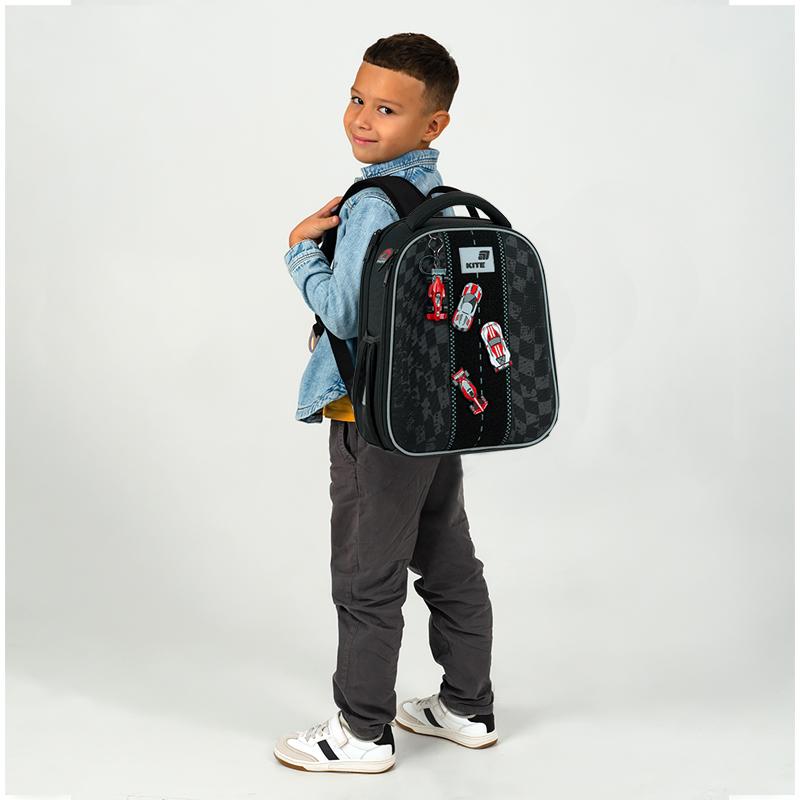 Каркасні моделі допомагають непосидам підтримувати канцелярію в акуратному вигляді: жорсткі панелі захищають книги і зошити від пошкоджень. Передня ущільнена панель розстібається донизу, щоб дитині було зручно складати та витягувати підручники та канцелярське приладдя.