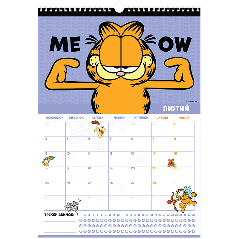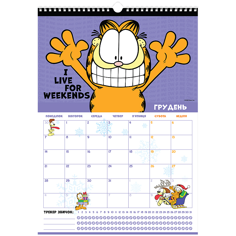 Календарна сітка – українською мовою. Шрифт – чіткий, розбірливий та виразний, а також доповнений прикольними малюнками.
