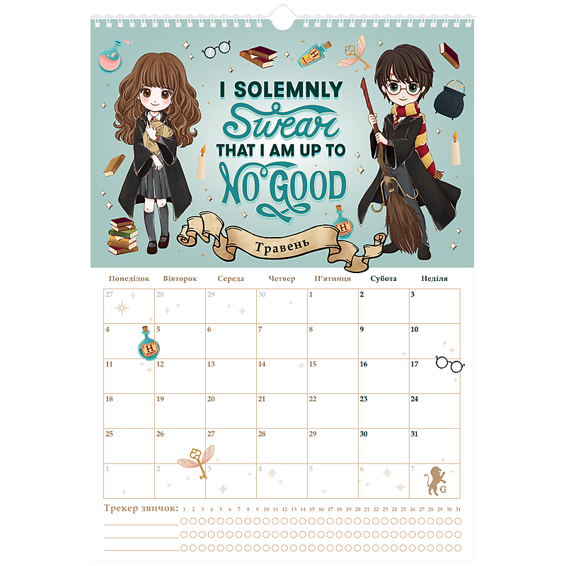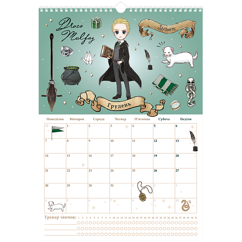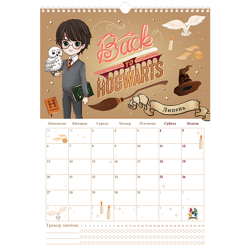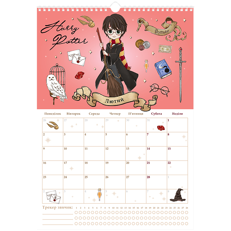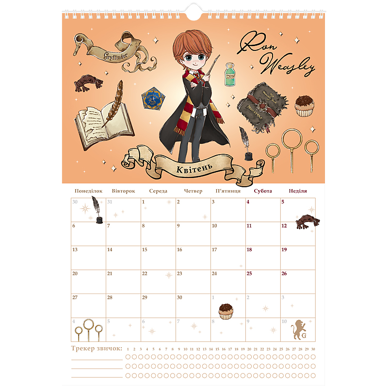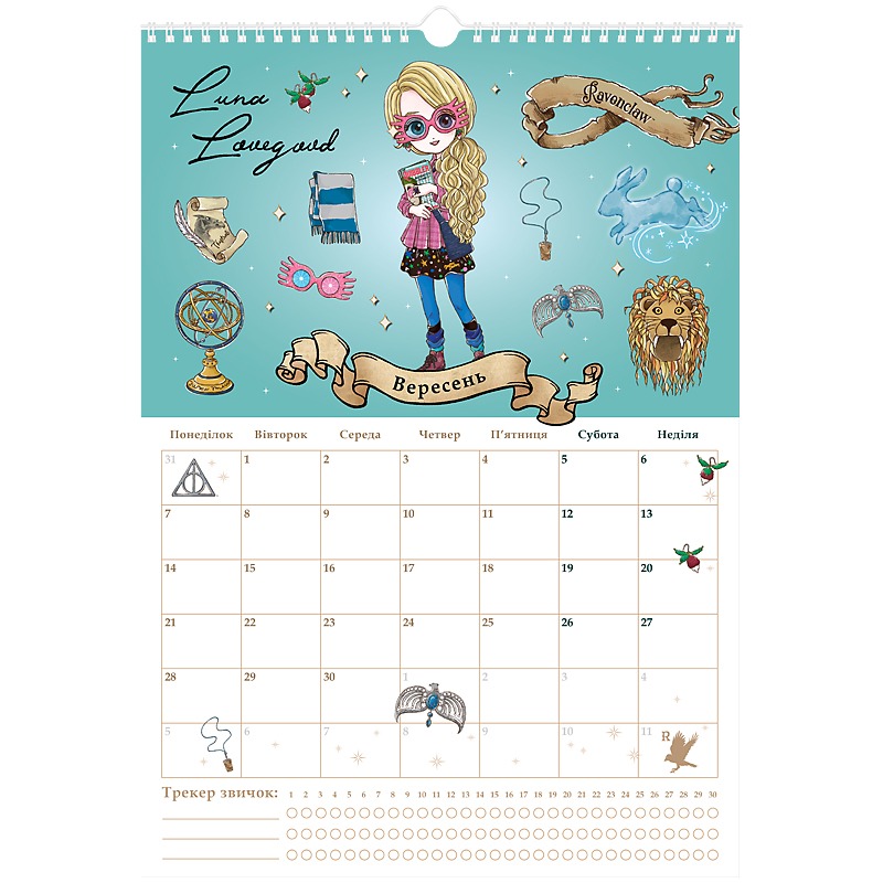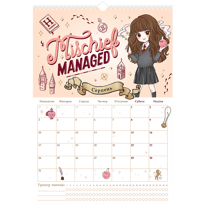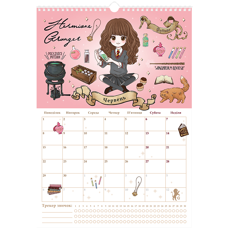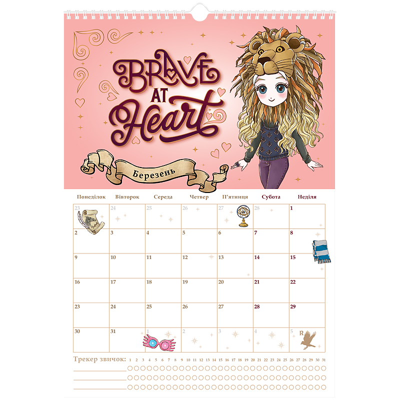 має сітку-планер, куди можна вписувати важливі події та щомісячний трекер звичок;