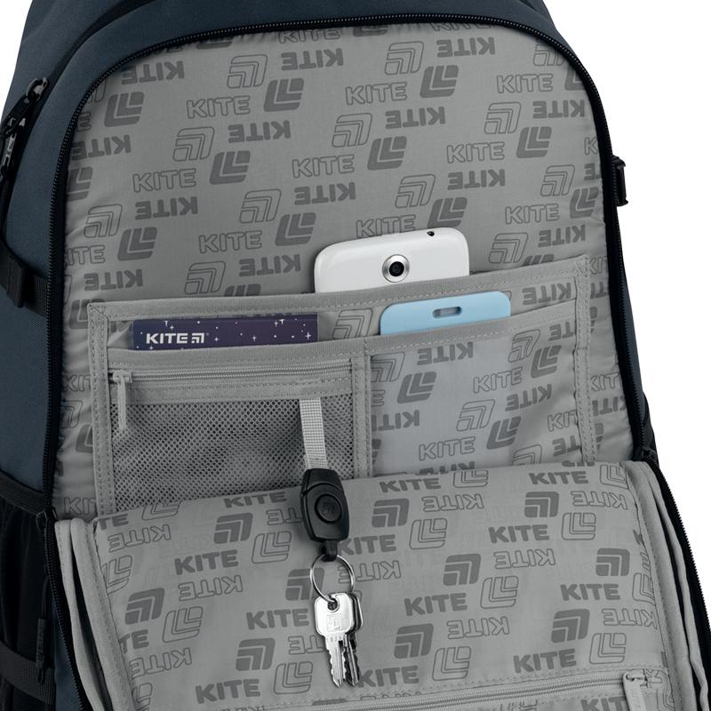 Рюкзак K26-1018XL-2. Анатомічна ущільнена спинка, 2 відділення, 5 передніх та 2 бічні кишені, кишеня на спинці, ущільнена ручка, кишені для ноутбука, планшета і телефону, органайзер, ключниця, нагрудний ремінь, світловідбивні елементи, підвіска