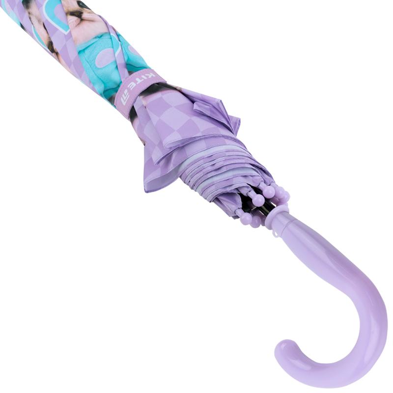 Пластикова ручка-гак – комфортна для дитячих долоньок, ідеально лягає в руку. З її допомогою парасольку зручно підвішувати під час зберігання. Щоб дитина не укололася, спиці захищені круглими пластиковими наконечниками; для практичності – точково пришиті до тканини.