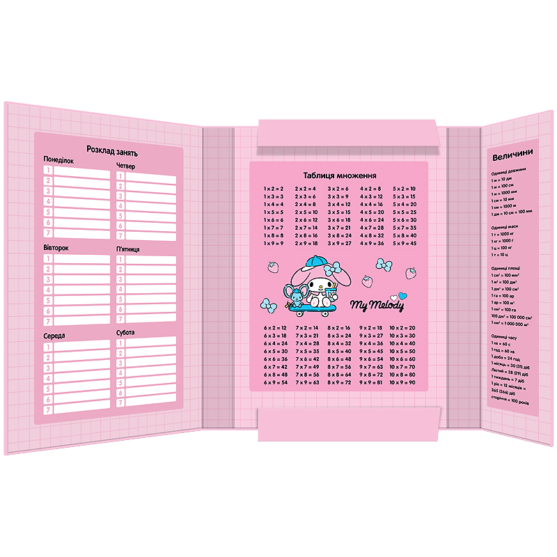 Папка має одне відділення. Призначена для зберігання щоденника і зошитів формату В5. Формат папки ідеально вміщається в будь-яку модель рюкзаків Kite і тримає в порядку зошити дитини, зберігаючи їх від зам'яття.