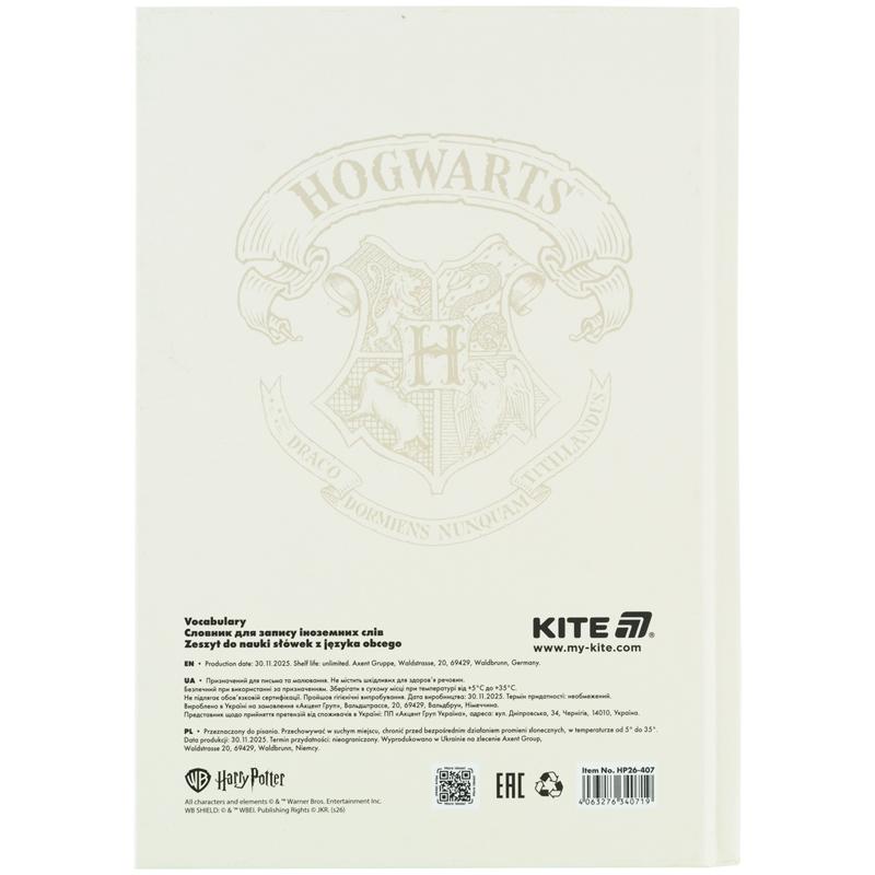 Словник для іноземної мови Kite HP26-407, 60 аркушів – надихає із задоволенням вивчати нову лексику. Лініювання – чітке та зручне, з полями для запису слів, транскрипцій і перекладу. На форзаці: англійський, французький, німецький та польський алфавіти.
